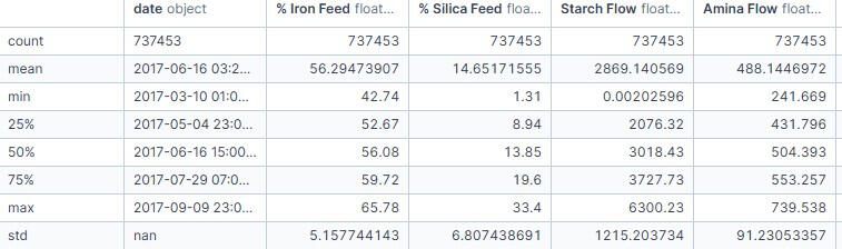 Before writing a single line of code, it’s crucial to know what we’re working with.📊 Dataset Info: This dataset is real-world mining process data taken from March to September 2017, published on Kaggle. It contains 737,454 rows and 24 columns, with readings taken as frequently as every 20 seconds for some variables and once per hour for others.Why it matters: This is the kind of messy, detailed data engineers deal with every day — perfect for practicing time-series analysis and feature selection.