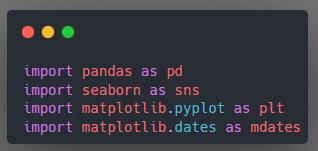We first import the necessary Python libraries (pandas, seaborn, matplotlib) and then load the CSV file. Converting the date column to a datetime object is critical because it allows us to filter, resample, and visualize by time later.