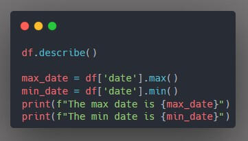 Before filtering for June 1, we check the earliest and latest timestamps to make sure we understand the full range of available data.