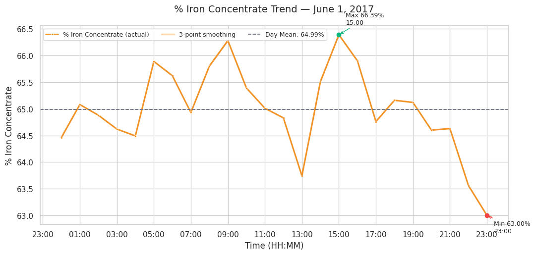 Most dashboards just show you a line chart and call it a day. This post is different.You’ll see how to:- Filter raw process data to a single day and keep only the important variables.- Turn 4,320 rows into a clear hourly snapshot that anyone can scan.- Plot a smooth but honest trend with min/max callouts and a day mean reference.- Check relationships visually with a pairplot and a correlation heatmap.And you’ll get copy-paste-ready Python code for every step — so you can replicate this workflow on your own data tomorrow.